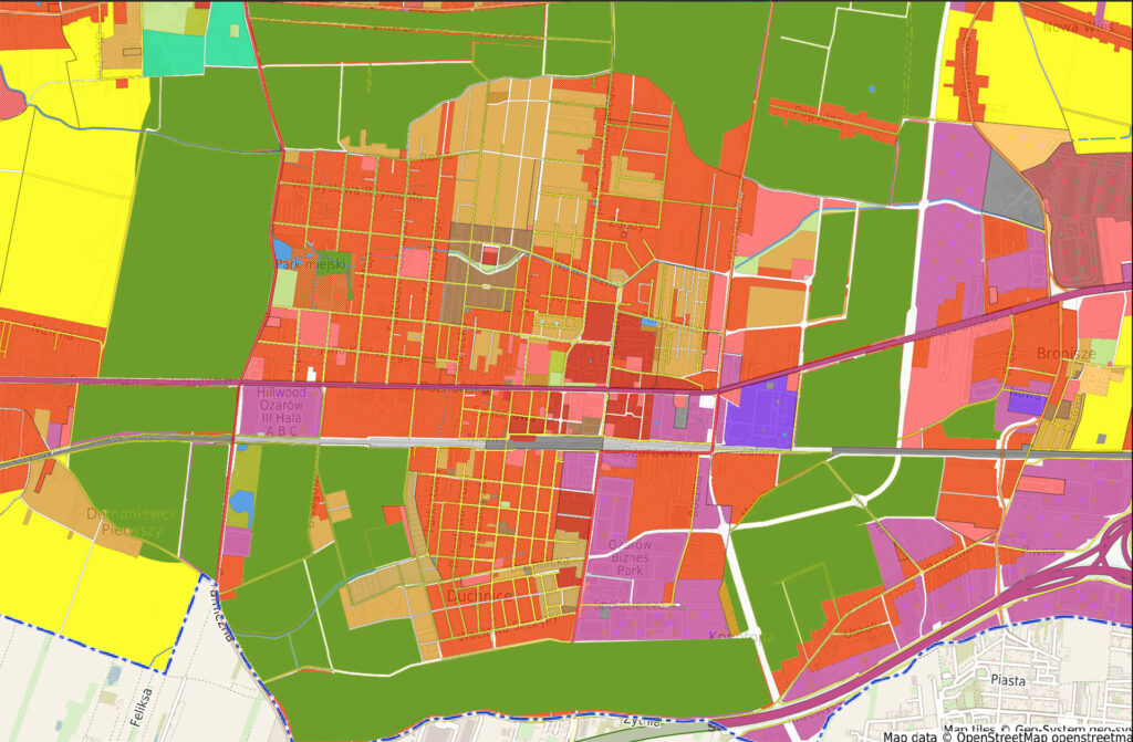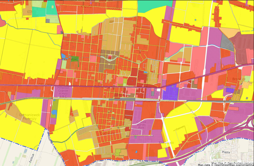Projekt wciąż owiany jest dużą tajemnicą, jednak dzięki zaprzyjaźnionym źródłom dotarliśmy do projektu zmian MPZP dla gminy Ożarów Mazowiecki. Nie ma co ukrywać, wygląda to… po prostu imponująco. Po lewej zobaczycie obowiązujący MPZP, w po prawej – planowany.