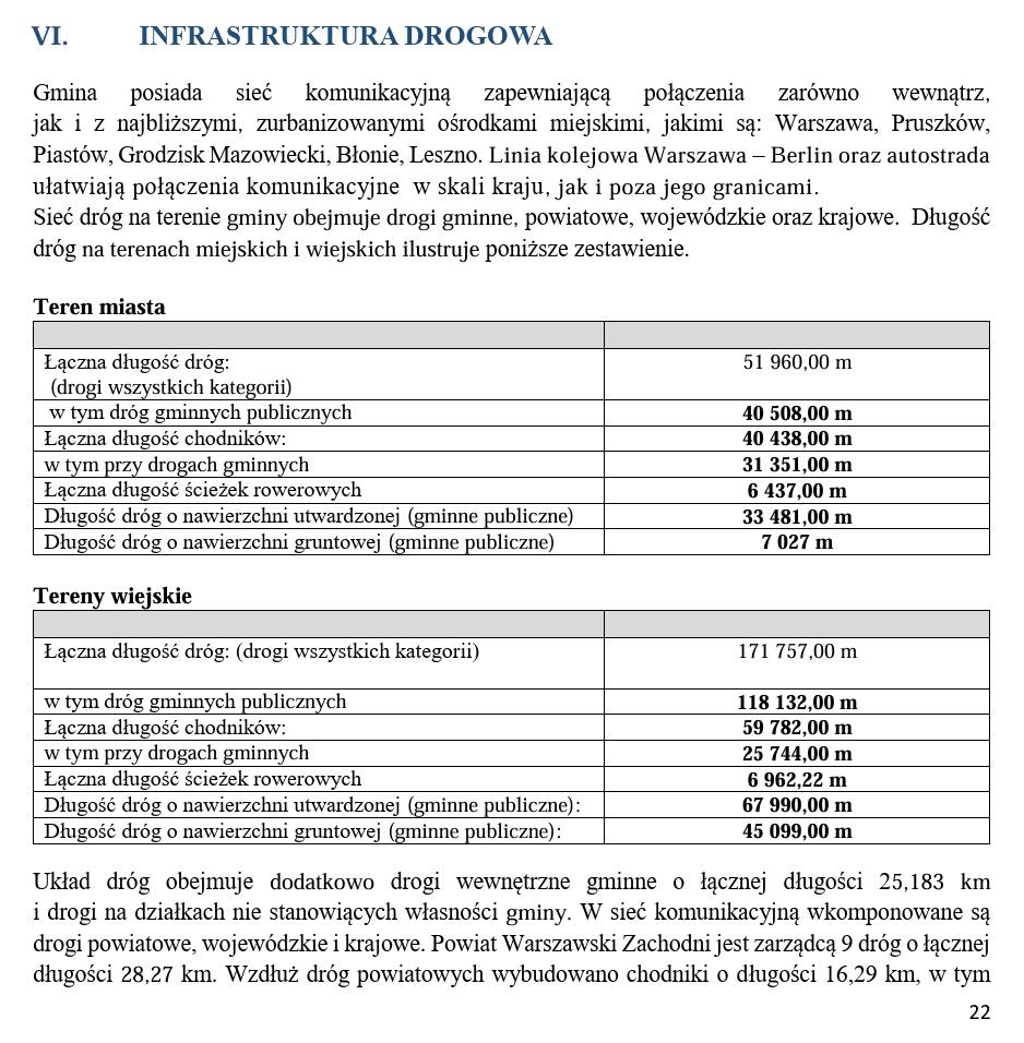 - Łączna długość dróg wszystkich kategorii – 223,7 km,